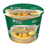 Sastojci: Rižini rezanci (72,9%): riža 60,6%, zgušnjivač (E1404), škrob, sol, emulgatori (E322 (sadrži SOJU), E466), začin (14,7%): sol, šećer, pojačivači okusa (E621, E631, E627), ekstrakt kvasca, začini, škrob, sredstvo protiv zgrudnjavanja (E551 (nanol)), biljno ulje (palmol, antioksidansi (E320, E321)), ulje korijena (11,4%): biljno ulje (palmol, antioksidansi (E320, E321)), aroma piletine 0,3%, bojilo (E160a), začini: povrće