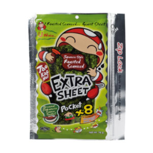 Sastojci: morske alge, japanski umak (SOJA umak, glukozni sirup, originalni japanski začin za umak (šećer, ekstrakt kvasca, zgušnjivač (E1451), pojačivač okusa (E621), sol), sladilo (maltitol i sukraloza)).